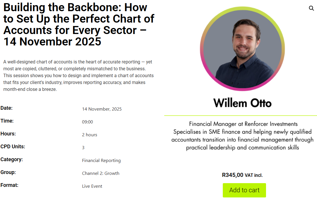 💰 R345,00 VAT incl. | Live Event | Category: Financial Reporting| Group: Channel 2: Growth