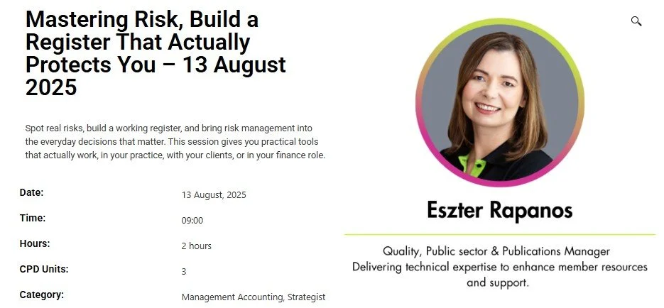 Every business faces risk. Whether it’s a missed payment, a cyberattack, or a simple accounting error, when things go wrong, it costs time, money, and trust. But here’s the good news: accountants are in the perfect position to help. By spotting and managing risks early, you can help clients protect their business, and turn this into a valuable advisory service. It’s not about complicated frameworks or red tape. It’s about using what you already know to make your clients safer and your practice more profitable.