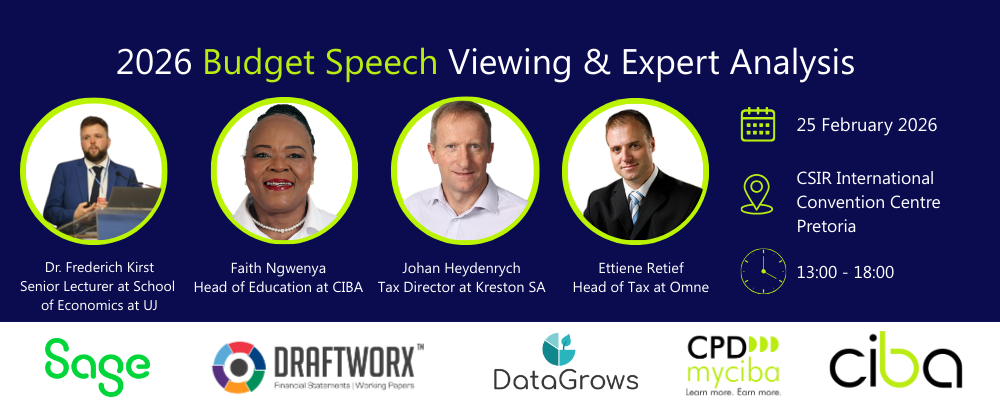 On 25 February 2026, South Africa’s National Budget Speech will set the tone for tax, compliance, and economic decision-making in the year ahead. CIBA invites you to a live Budget Speech Viewing & Expert Analysis Event, designed specifically for finance professionals who cannot afford to “wait and see” what it means.